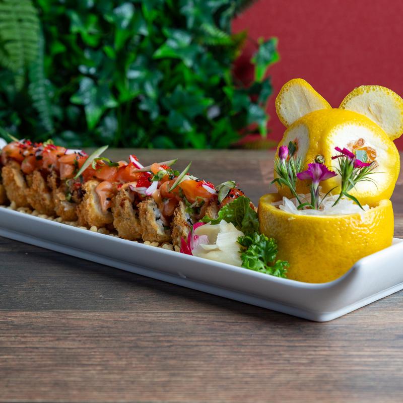 Before placing your order, please inform your server if a person in your party has a food allergy. Consuming raw or undercooked meats, poultry, seafood, shellfish or eggs may increase the risk of foodborne illness. • All sushi orders are made to order, please inform your server if you would like any ingredients changed | 3 flavor sauce: Eel sauce, Kimchi sauce, & Spicy Mayo.